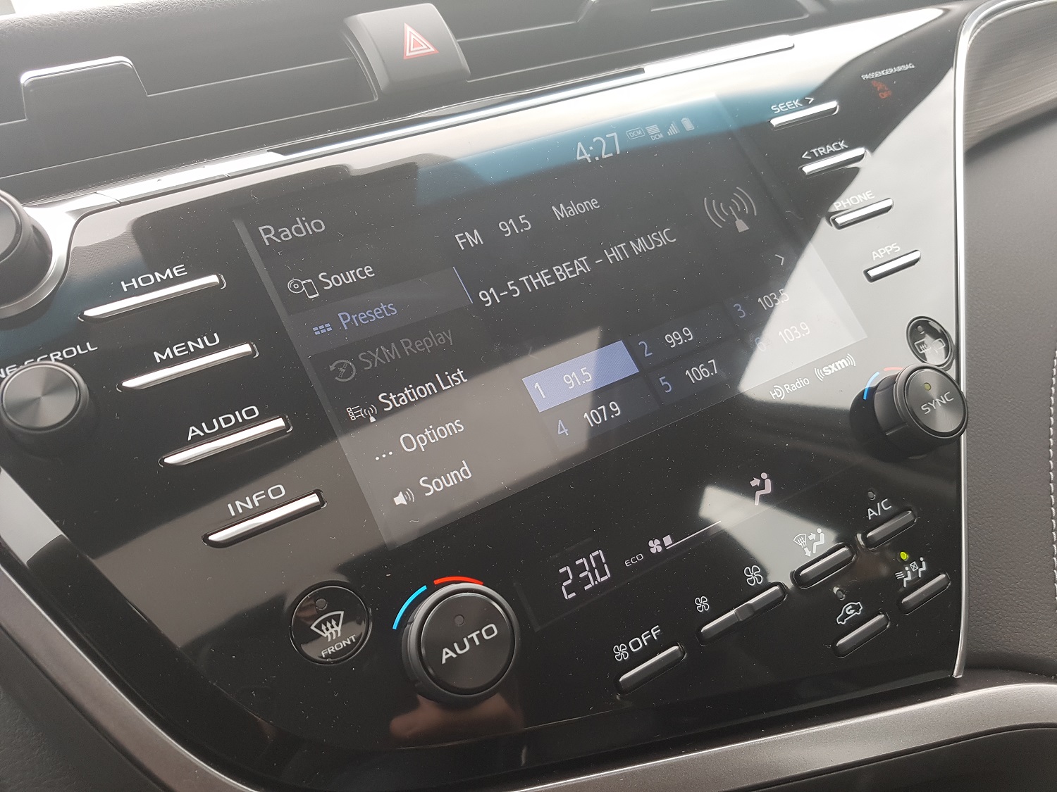 I can read and reply (canned messages or full responses) to text messages on the screen or with my voice, I can view all my contacts on the screen, and even assign favourite contacts to four quick tiles on my “Home” screen of the head. This works good, but the voice quality of Entune sucks. Spoken phrases do sound like Toyota is stuck about six years behind on text-to-speech technology, and that’s why I’m rating it at only a 7/10. I find myself just using the hands free Google Assistant when I want to send text messages – it’s a bit faster and much more proven voice recognition technology.