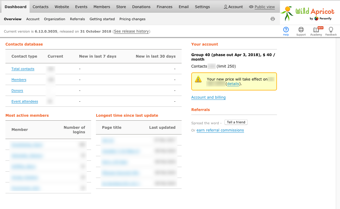 Wild Apricot ensures that as your non-profit, charity, or membership-based organization continues to grow and thrive, that they will continue to receive more and more of a cut of your profits to pay their bill which will increase proportionally with the success of your organization.