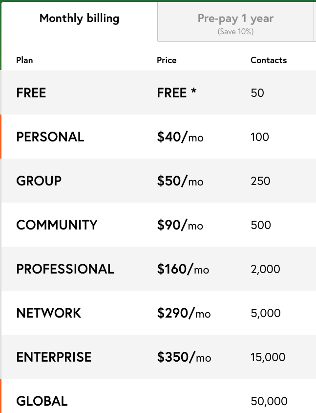 Wild Apricot doesn’t bill you a flat rate, nor do they bill you based on what platform features you want to use, they bill you based on how many contacts your organization has. The important thing to note here is that a contact does not equal a paying member necessarily! Contacts can become members, yes, but a contact may also just be someone you’ve added to the system to get your regular mailing list.