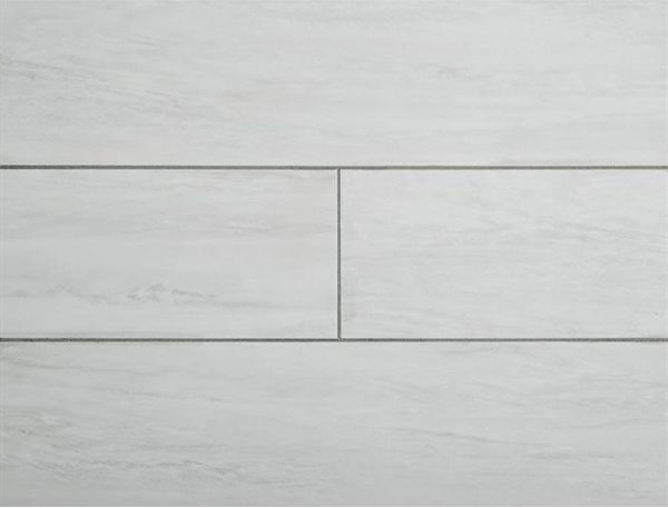 For the floor, I wanted as good as I could get on a shoestring budget. I went with Stainmaster Peel-and-Stick groutable tile in the “White Waza” finish.