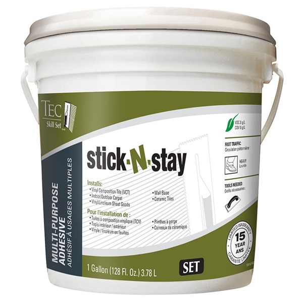 I decided to go against the instructions, void my tile warranty, and add an extra strong floor adhesive into the plans. I picked up a tub of TEC Skill Set Stick-N-Stay Multipurpose Adhesive. This was the most expensive in the floor adhesive section at Lowes, and seemed to promise outstanding strength in all conditions.