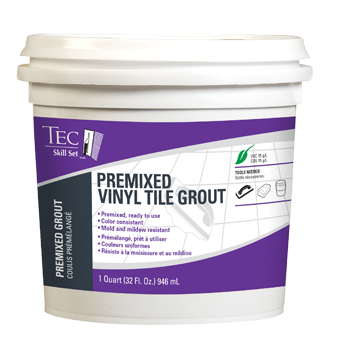 This is where most people go wrong and become unhappy with the groutable tile choice. Do not use regular grout. Yes, even the salesman at Lowes had no idea what he was talking about until another salesman saw that he had the wrong product in my cart and corrected him. There’s grout that designed specifically for vinyl tiles – that is what you want! Here I went with TEC Skill Set Premixed Vinyl Tile Grout. This is a sanded acrylic grout that’s more flexible than a traditional cement grout, and should also adhere better to the vinyl tile and my old vinyl tile base underneath it.